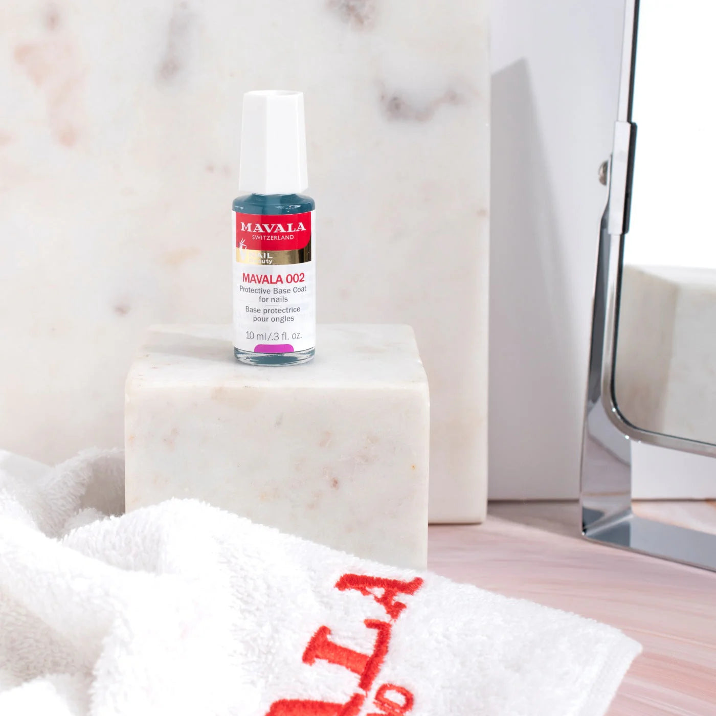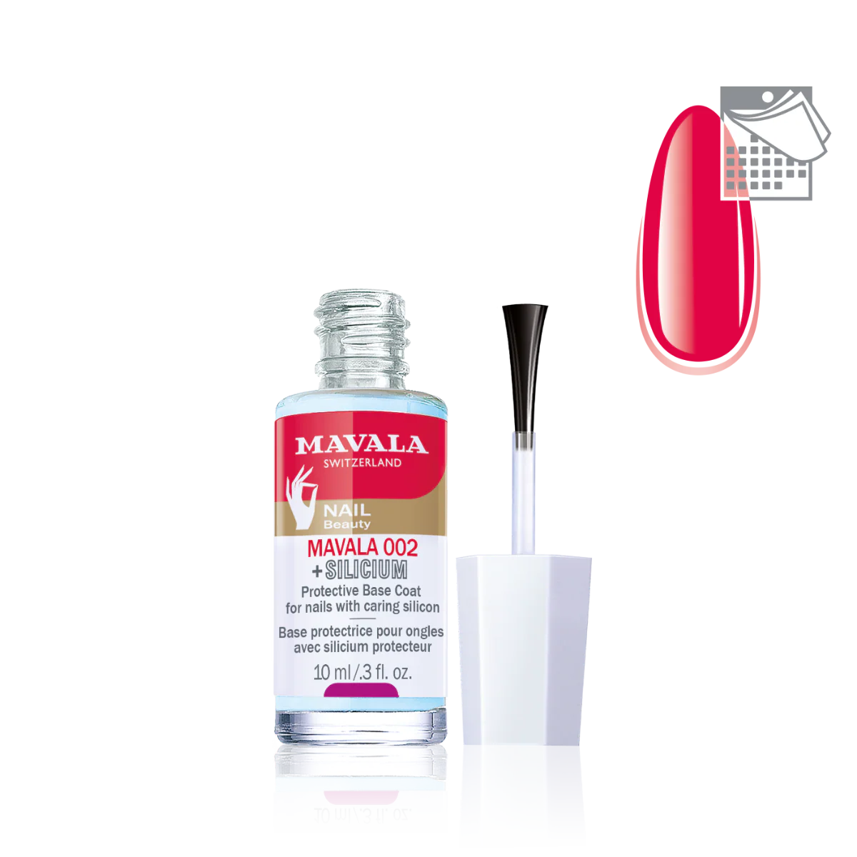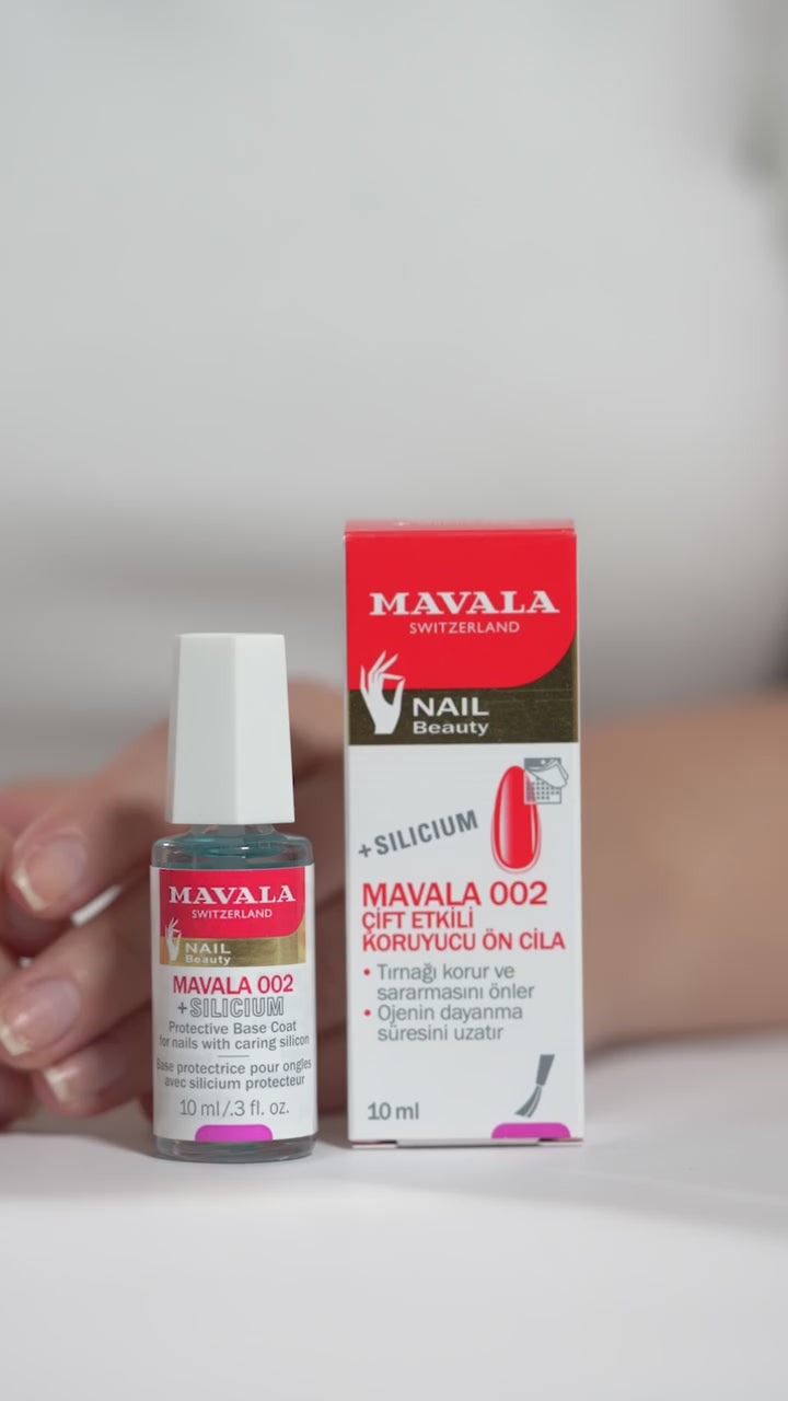 MAVALA 002, silisyum içeren özel formülüyle tırnak ile oje arasında koruyucu bir katman oluşturarak pigmentlerin tırnağa doğrudan temasını önlemeye yardımcı olur. Böylece oje uygulaması için pürüzsüz bir tırnak yüzeyi görünümü sağlanmasına ve ojenin daha uzun süre dayanmasına yardımcı olur.