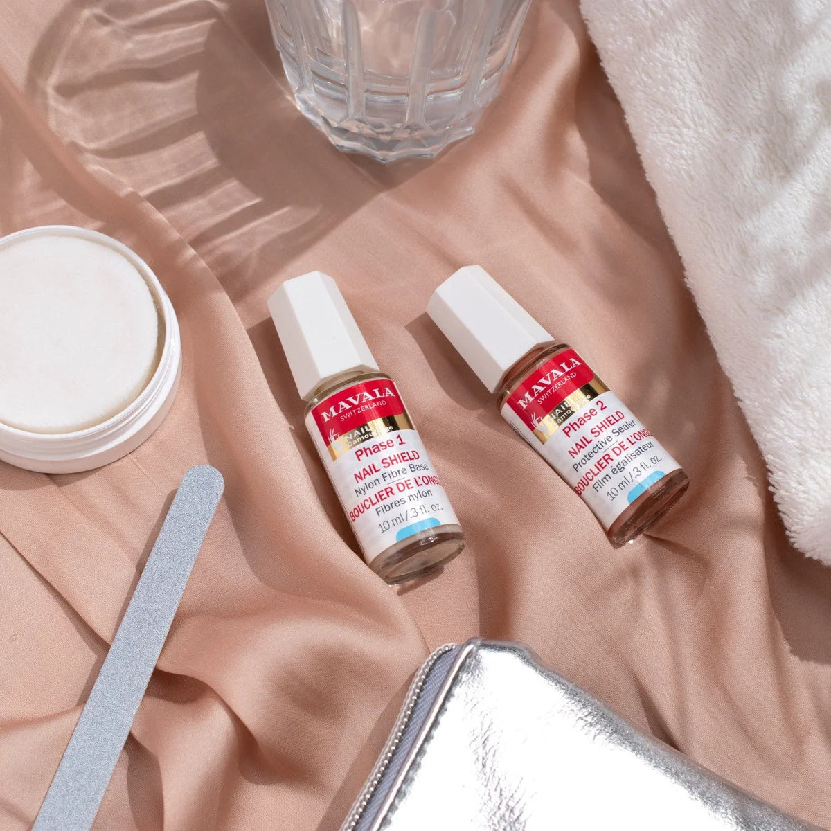 MAVALA Tırnak Kalkanı, iki aşamalı formülü ile tırnaklarınız için güçlü bir mekanik bariyer oluşturur. Darbelere, çatlamalara ve soyulmalara karşı koruyucu kalkan görevi görür. Tırnaklarınız için adeta bir zırh görevi üstlenirken, MAVALA Scientifique K+, Mava-Flex veya Nailactan gibi bakım ürünleriyle birlikte kullanıldığında tırnak yapısının korunmasına ve güçlendirilmesine destek sağlar.